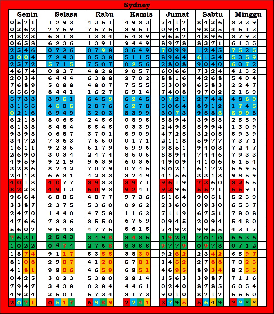 | TABEL DATA SYDNEY 6D VERSI HARIAN |
