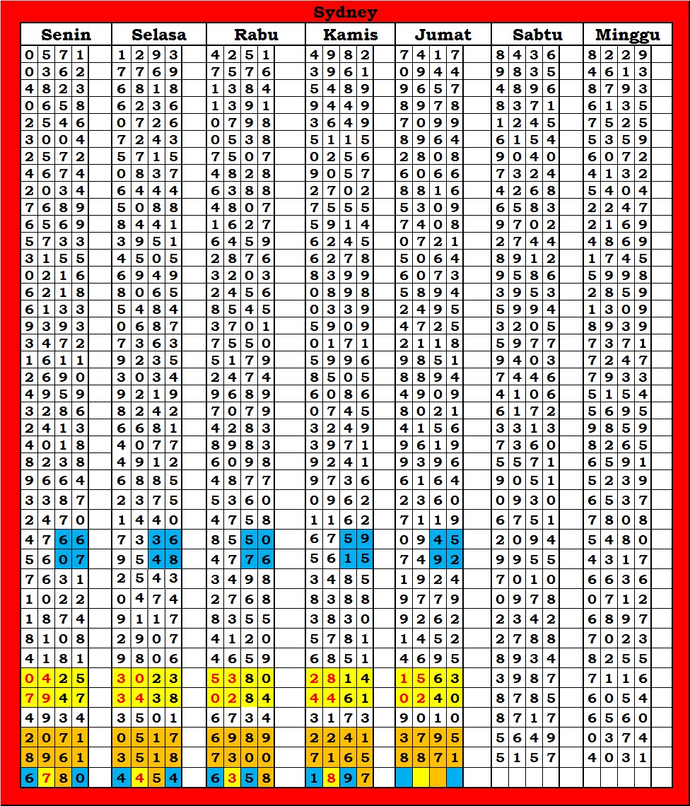 | TABEL DATA SYDNEY 6D VERSI HARIAN |