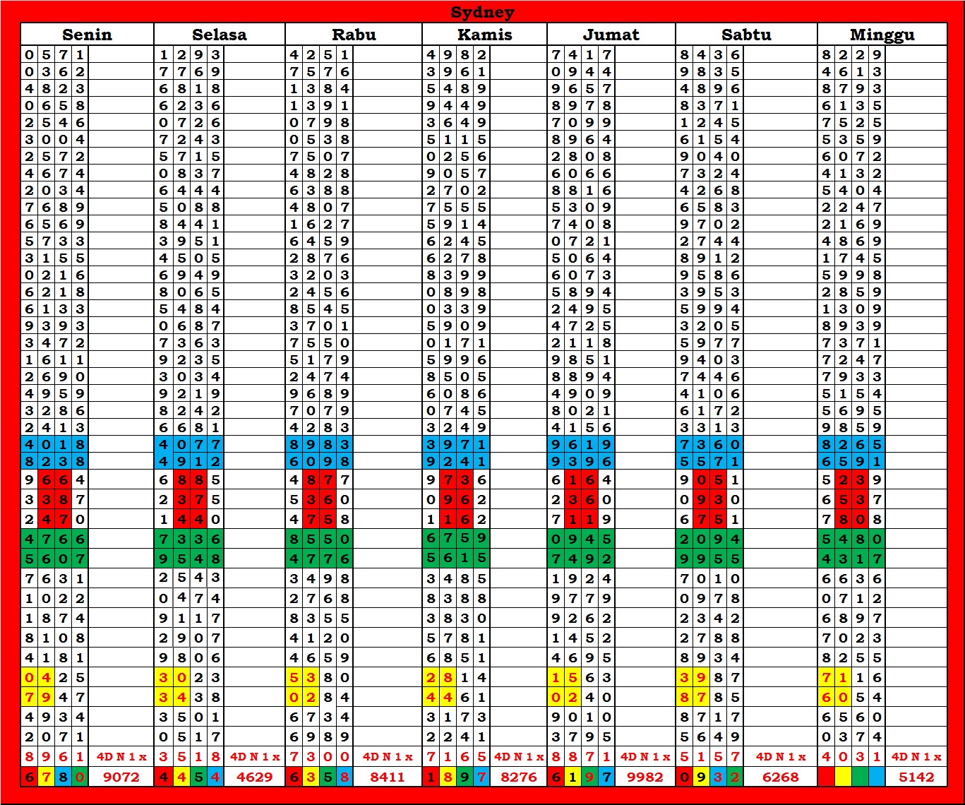 | TABEL DATA SYDNEY 6D VERSI HARIAN |