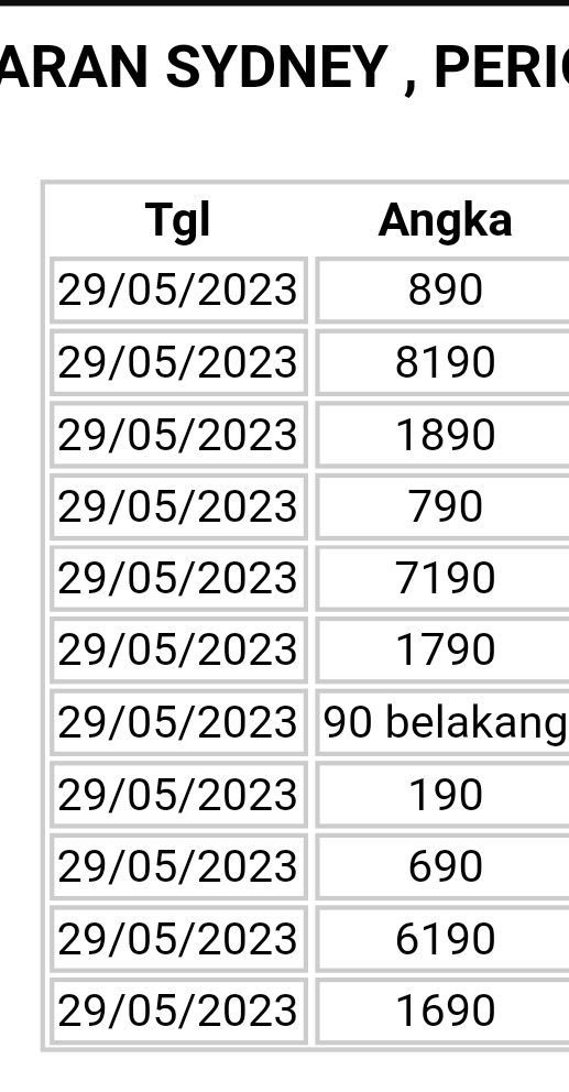 | TABEL DATA SYDNEY 6D VERSI HARIAN |