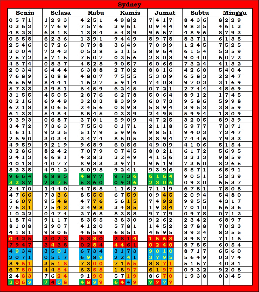 | TABEL DATA SYDNEY 6D VERSI HARIAN |
