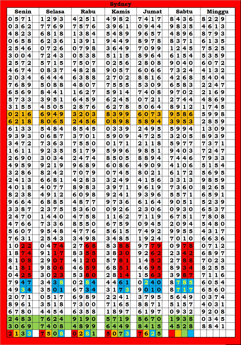 | TABEL DATA SYDNEY 6D VERSI HARIAN |