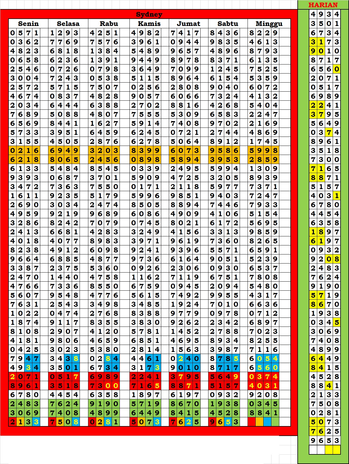 | TABEL DATA SYDNEY 6D VERSI HARIAN |