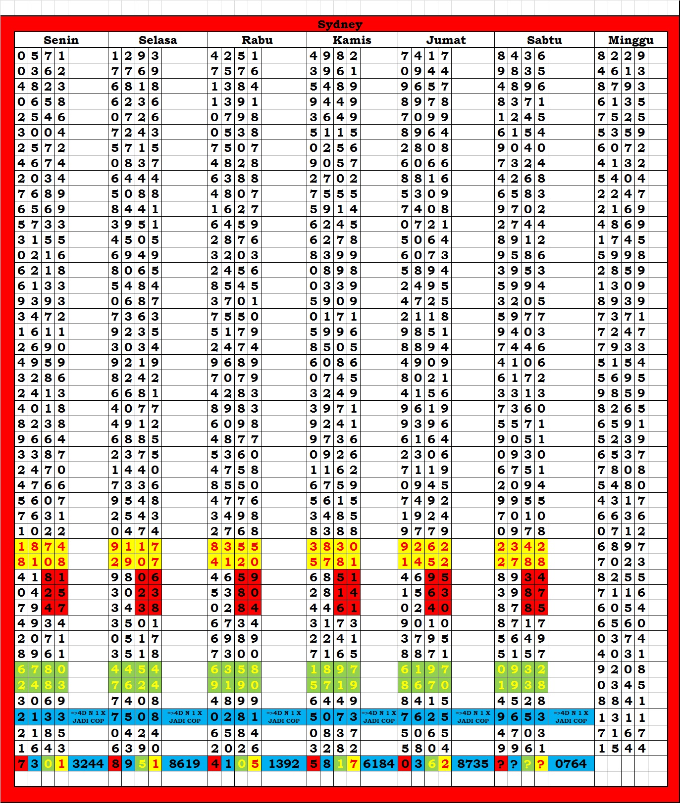 | TABEL DATA SYDNEY 6D VERSI HARIAN |