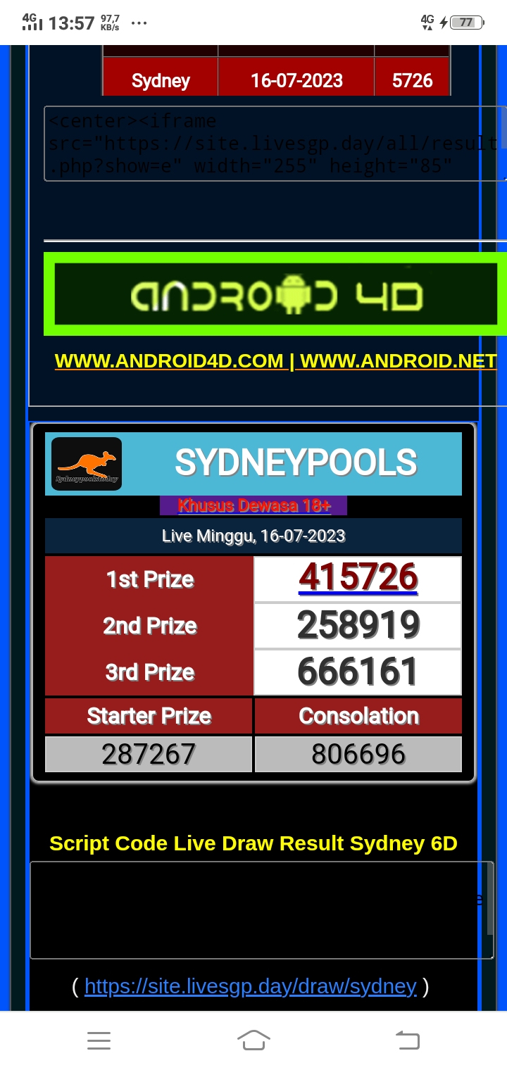 | PAITO WARNA SYDNEY 4D HARIAN |