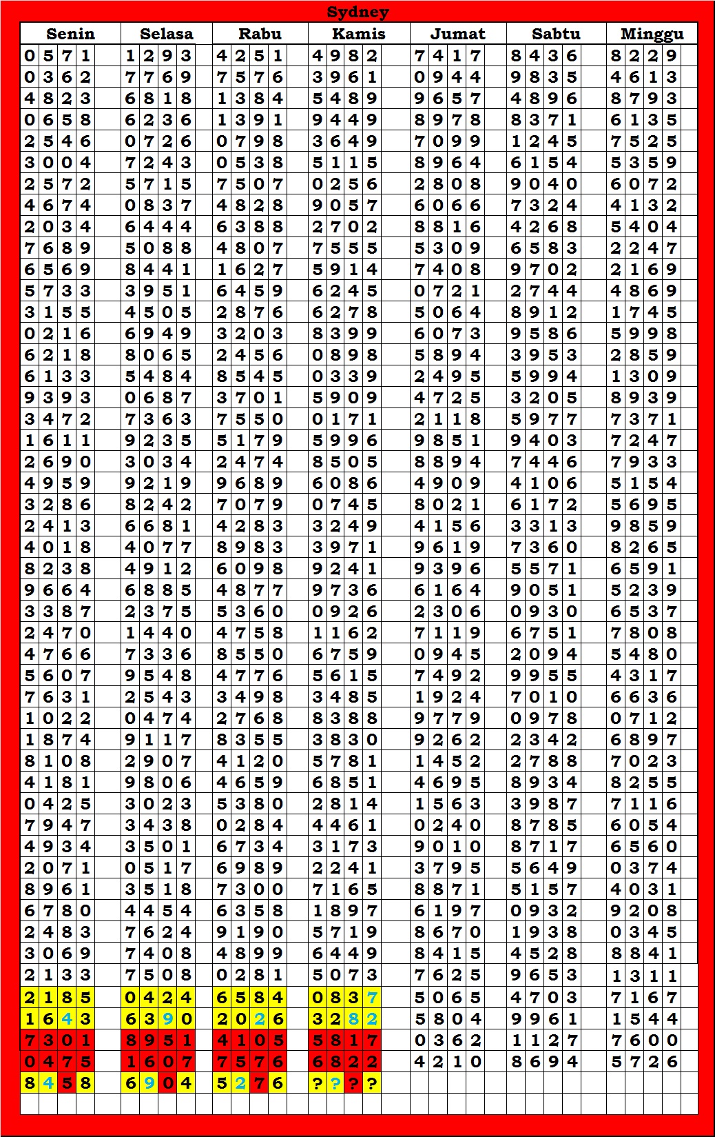 | TABEL DATA SYDNEY 6D VERSI HARIAN |