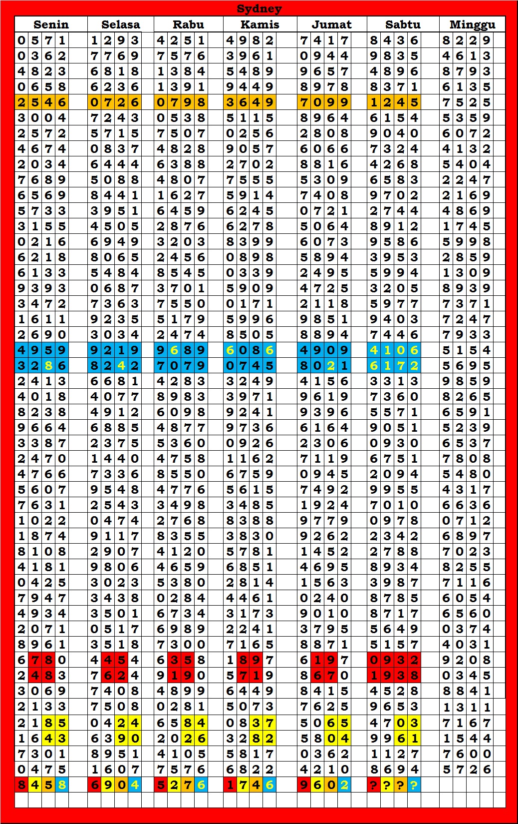 | TABEL DATA SYDNEY 6D VERSI HARIAN |