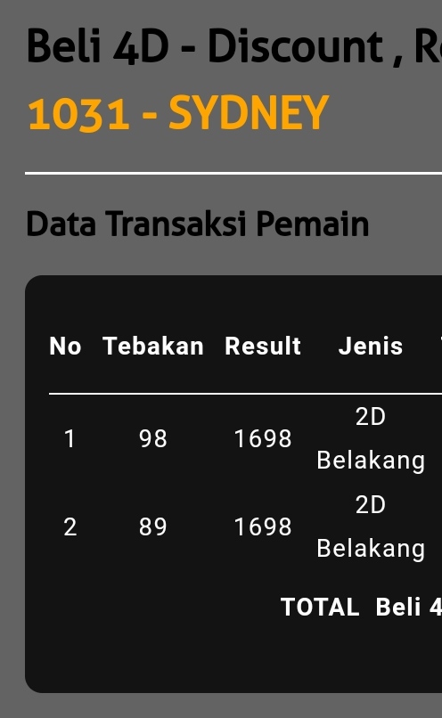 | PAITO WARNA SYDNEY 4D |