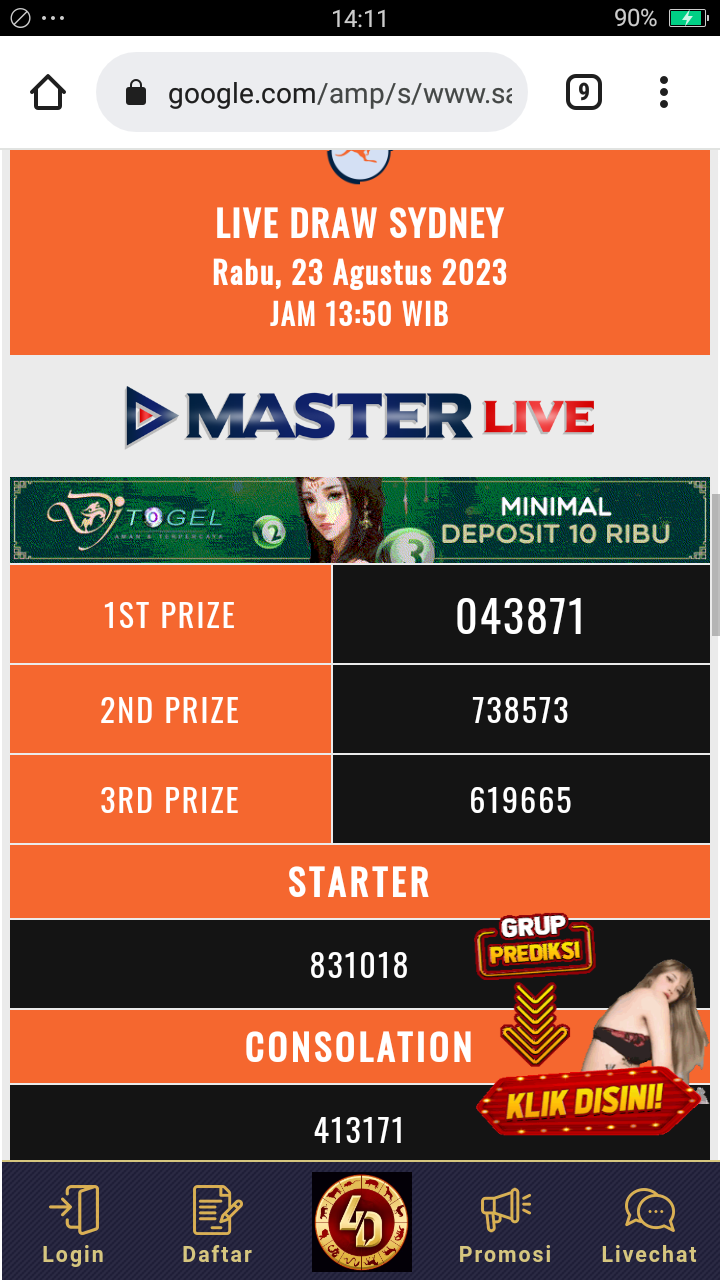 MASTER SYDNEY Selasa, 03-02-2026 Merupakan Prediksi Otomatis yang menggabungkan Metode Kalender Togel Dengan Rumus-rumus kontrol yang sudah terbukti keakuratanya.Gunakan Aplikasi Rekap untuk mendapatkan LN TOP. Harap Maklum Jika kadang meleset MASTER SYDNEY kita. Jadikan ini sebagai perbandingan saja dan tetap UPS