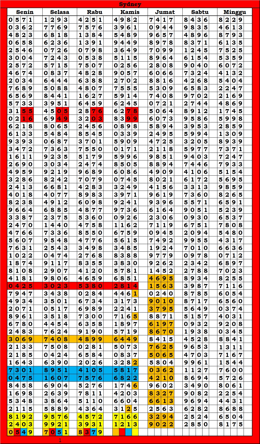 | TABEL DATA SYDNEY 6D VERSI HARIAN |