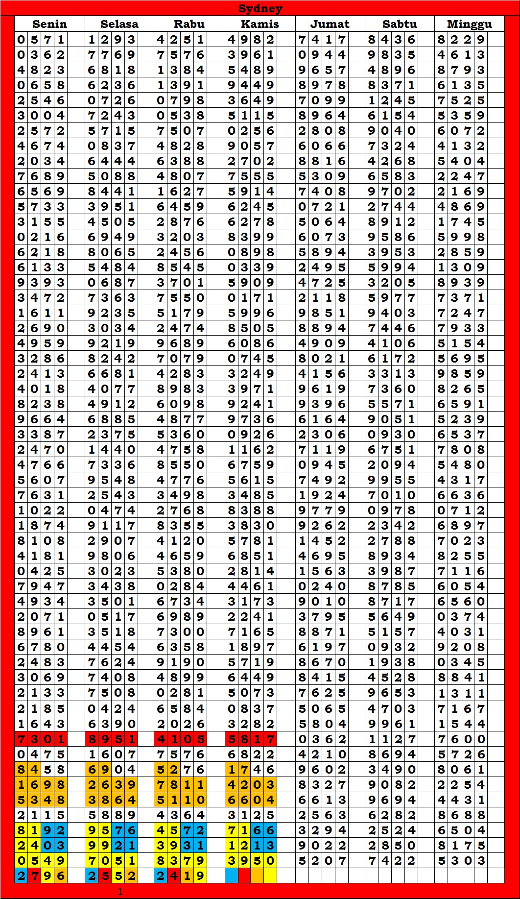 | TABEL DATA SYDNEY 6D VERSI HARIAN |