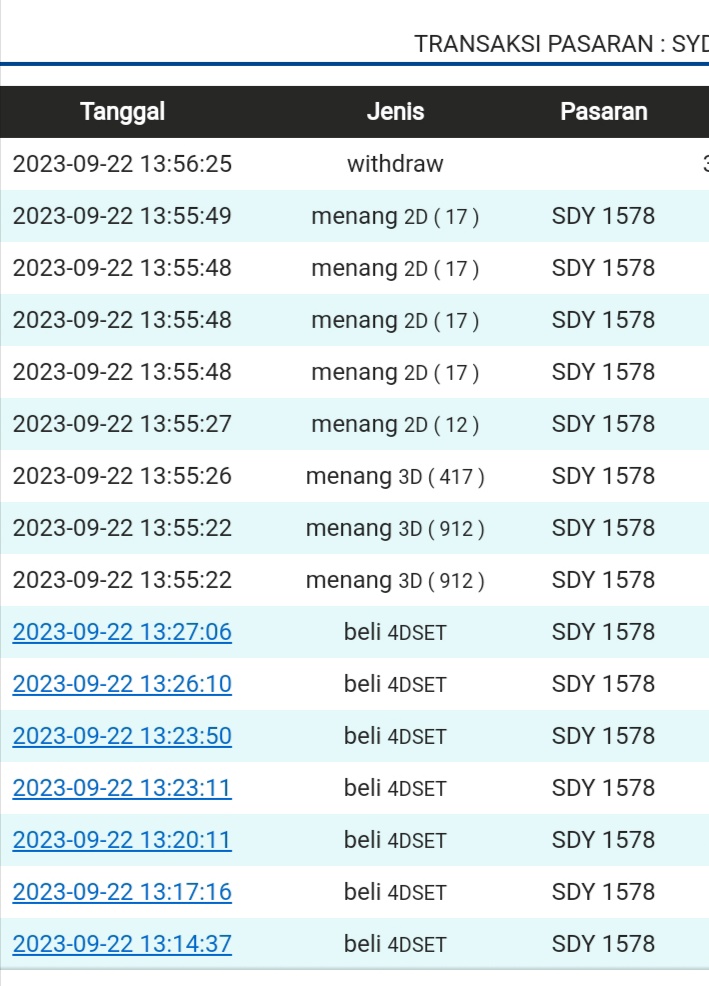 | TABEL DATA SYDNEY 6D VERSI HARIAN |