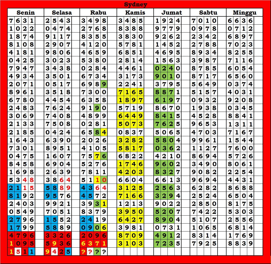 MASTER SYDNEY Selasa, 03-02-2026 Merupakan Prediksi Otomatis yang menggabungkan Metode Kalender Togel Dengan Rumus-rumus kontrol yang sudah terbukti keakuratanya.Gunakan Aplikasi Rekap untuk mendapatkan LN TOP. Harap Maklum Jika kadang meleset MASTER SYDNEY kita. Jadikan ini sebagai perbandingan saja dan tetap UPS