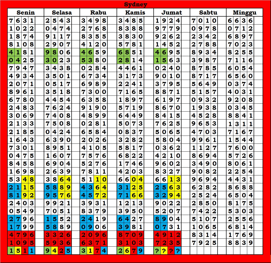 | TABEL DATA SYDNEY 6D VERSI HARIAN |