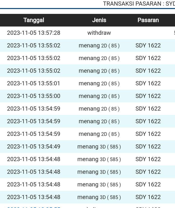 | TABEL DATA SYDNEY 6D VERSI HARIAN |