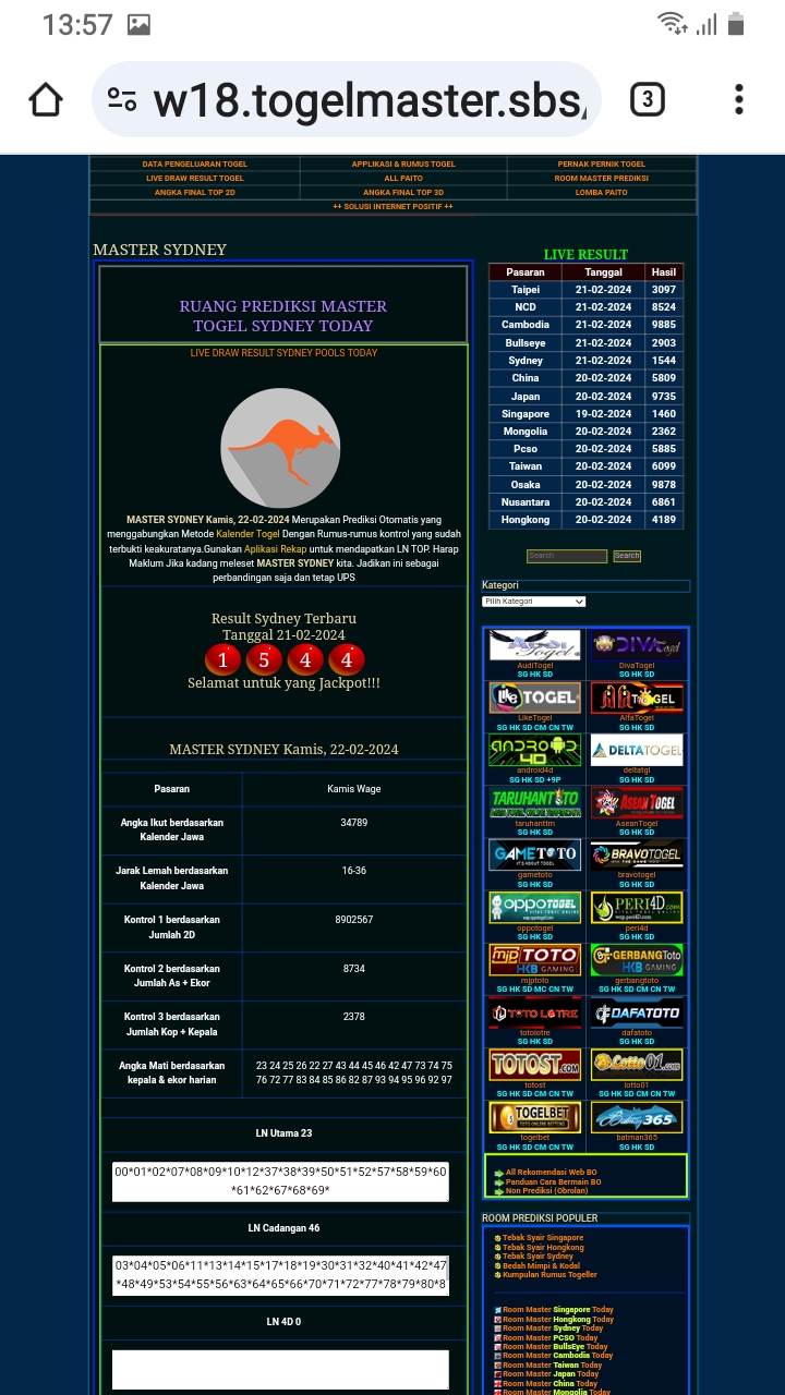 MASTER SYDNEY Minggu, 01-02-2026 Merupakan Prediksi Otomatis yang menggabungkan Metode Kalender Togel Dengan Rumus-rumus kontrol yang sudah terbukti keakuratanya.Gunakan Aplikasi Rekap untuk mendapatkan LN TOP. Harap Maklum Jika kadang meleset MASTER SYDNEY kita. Jadikan ini sebagai perbandingan saja dan tetap UPS