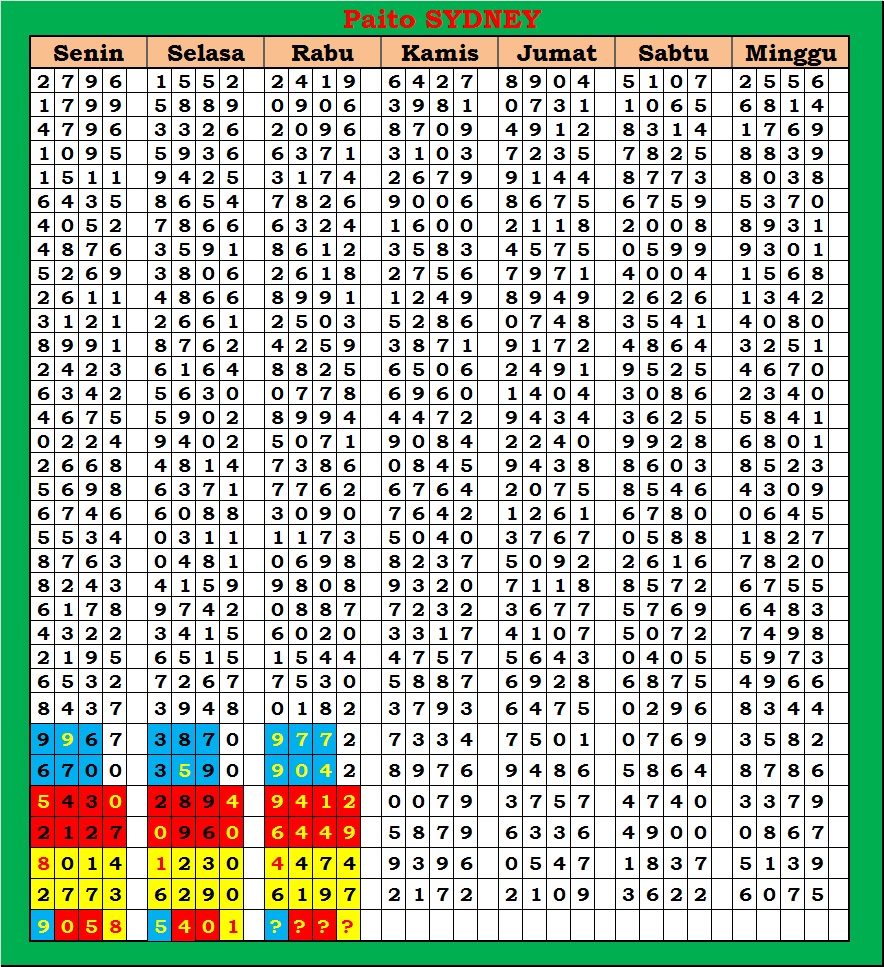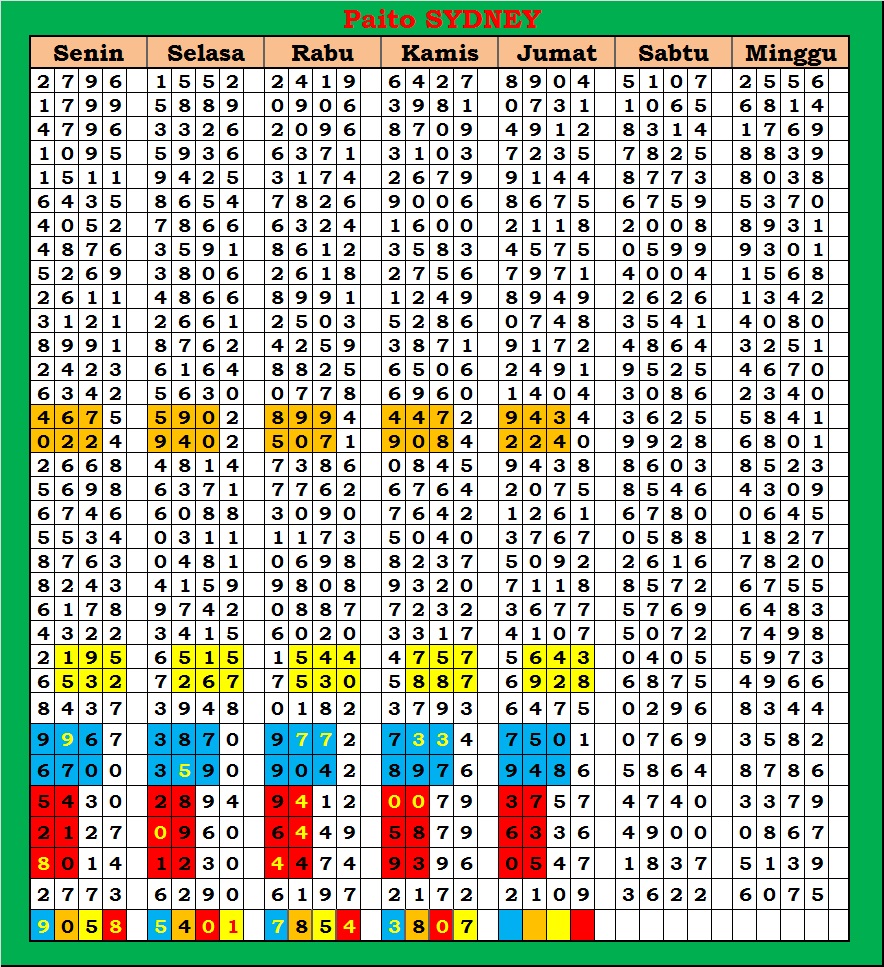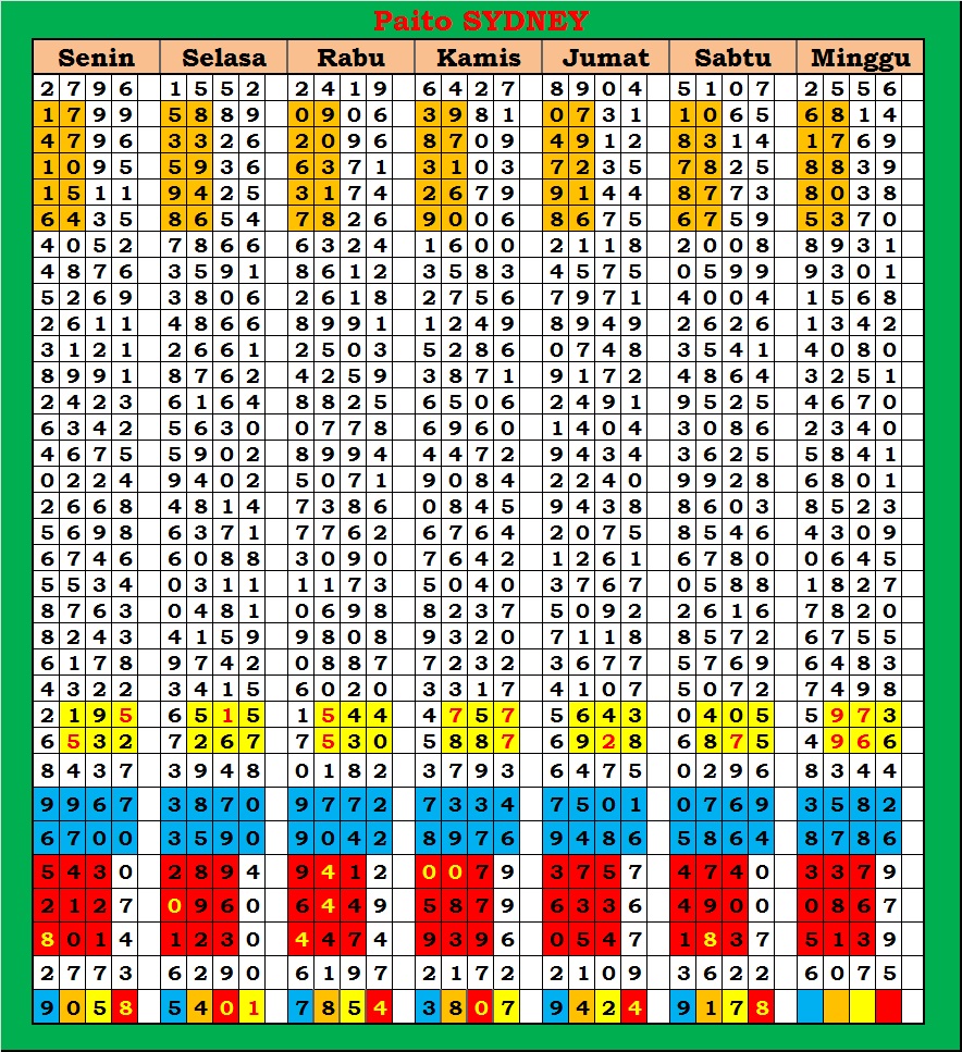 | PAITO WARNA SYDNEY 4D HARIAN |