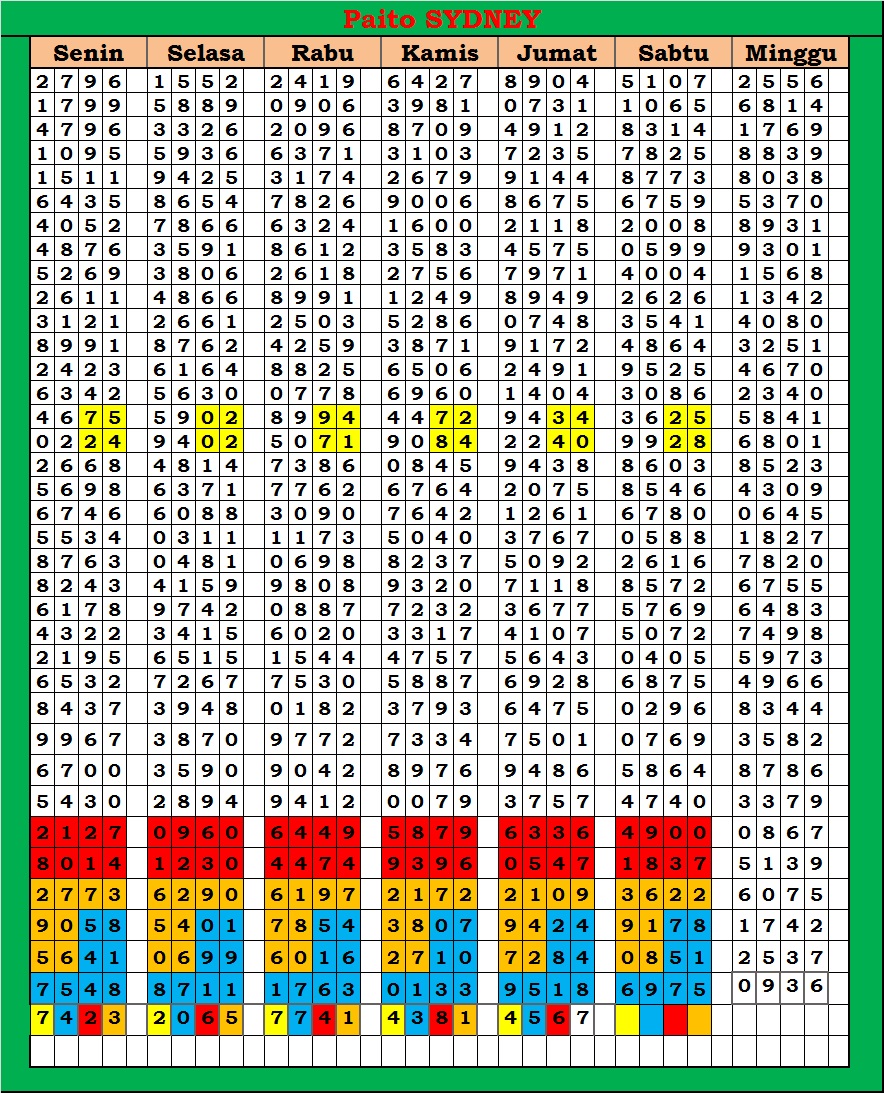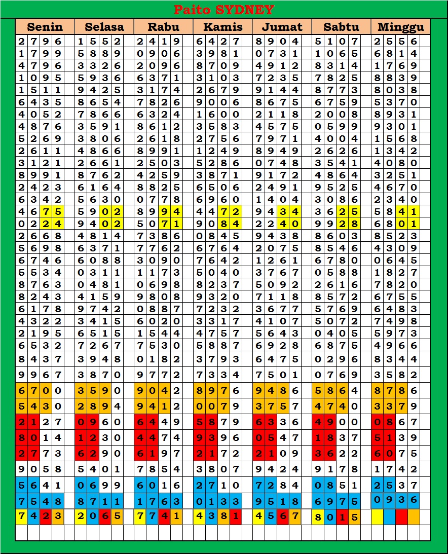 MASTER SYDNEY Minggu, 01-02-2026 Merupakan Prediksi Otomatis yang menggabungkan Metode Kalender Togel Dengan Rumus-rumus kontrol yang sudah terbukti keakuratanya.Gunakan Aplikasi Rekap untuk mendapatkan LN TOP. Harap Maklum Jika kadang meleset MASTER SYDNEY kita. Jadikan ini sebagai perbandingan saja dan tetap UPS