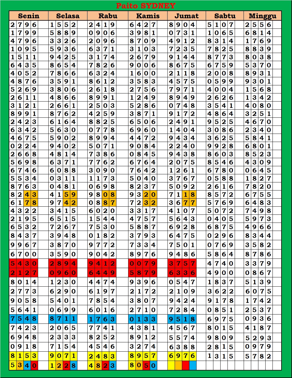 | PAITO WARNA SYDNEY 4D HARIAN |