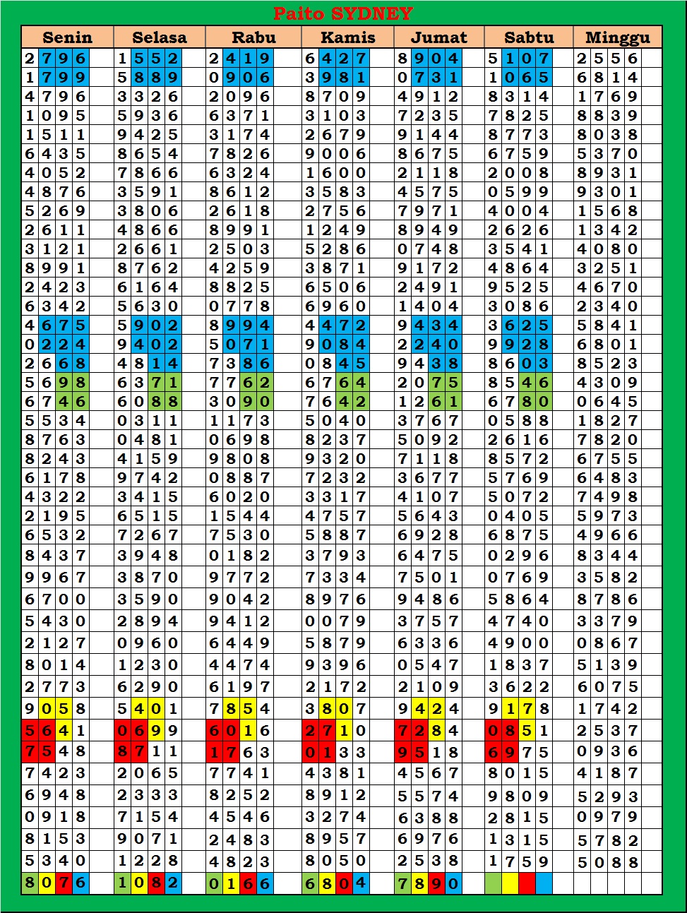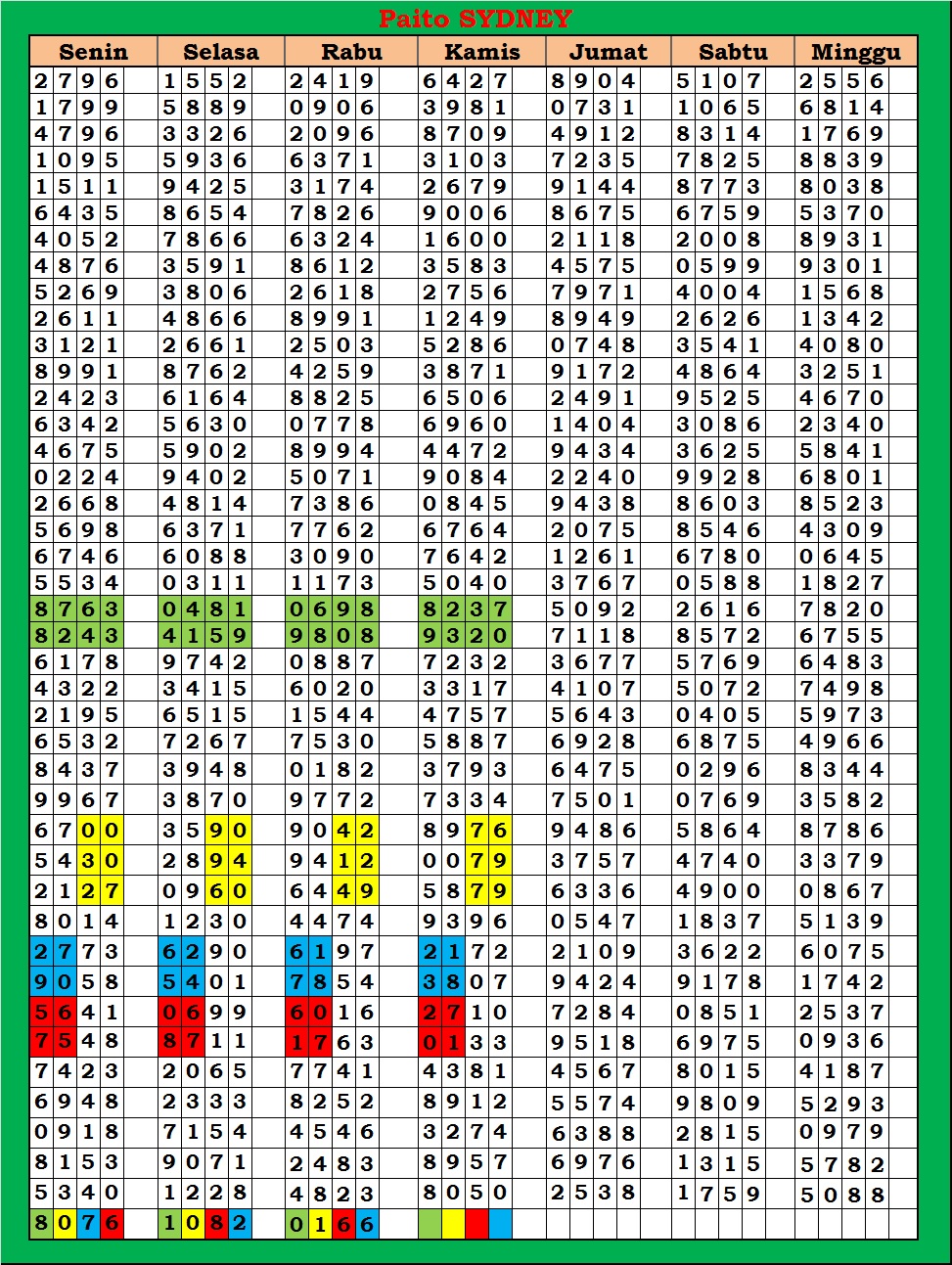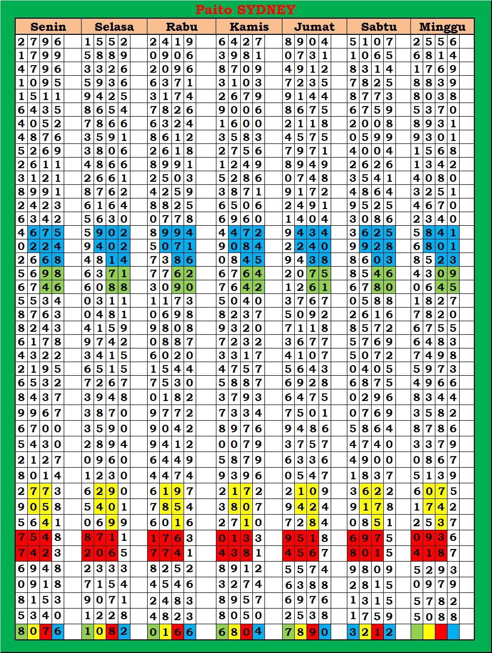 | PAITO WARNA SYDNEY 4D HARIAN |