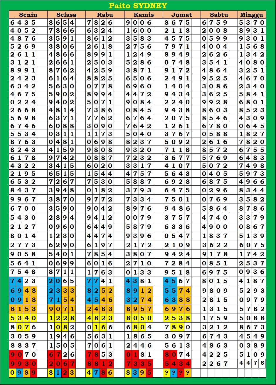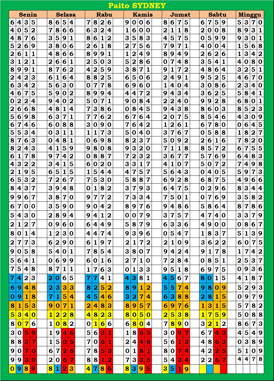 | PAITO WARNA SYDNEY 4D HARIAN |