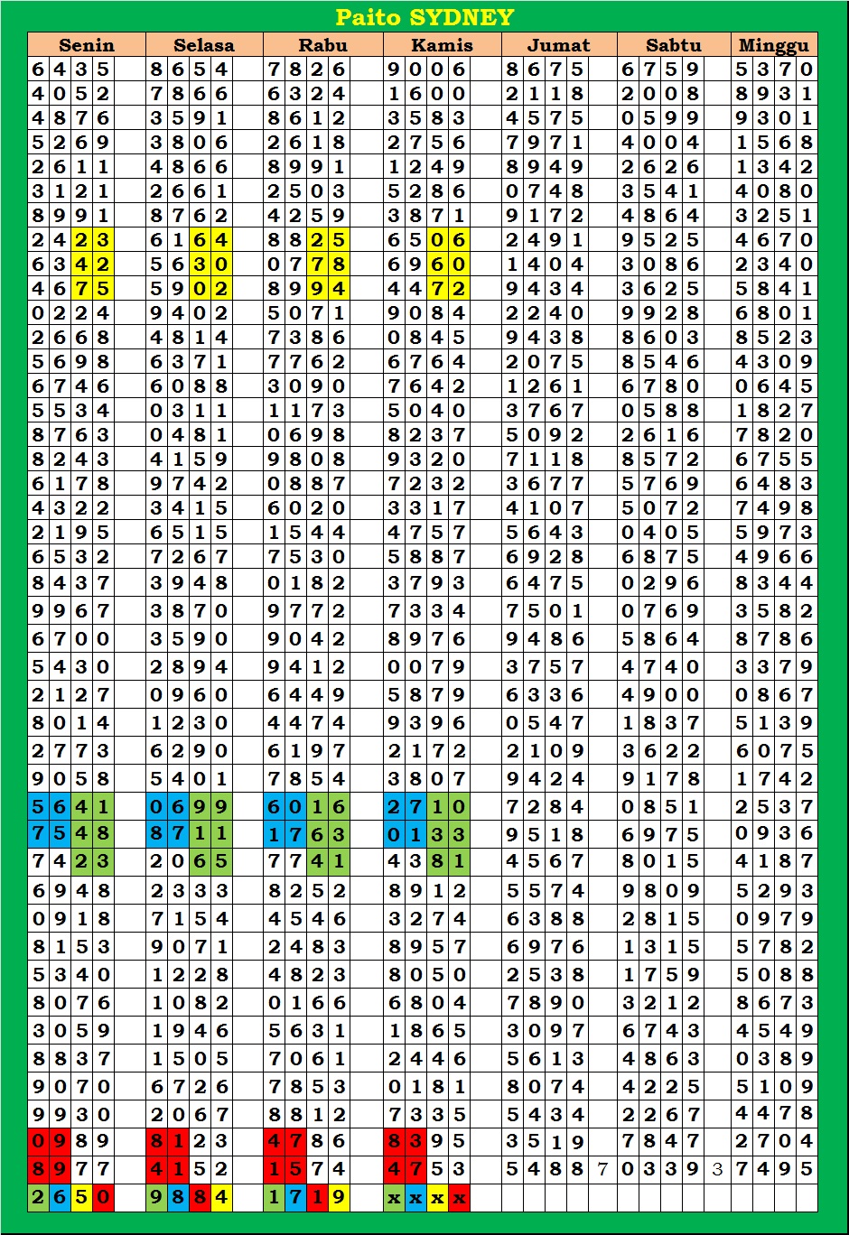 | PAITO WARNA SYDNEY 4D HARIAN |