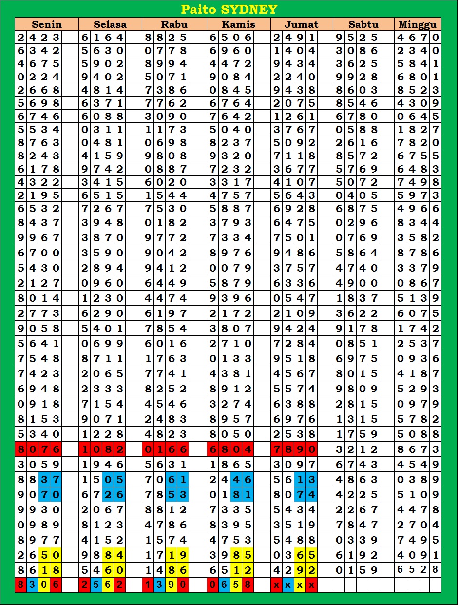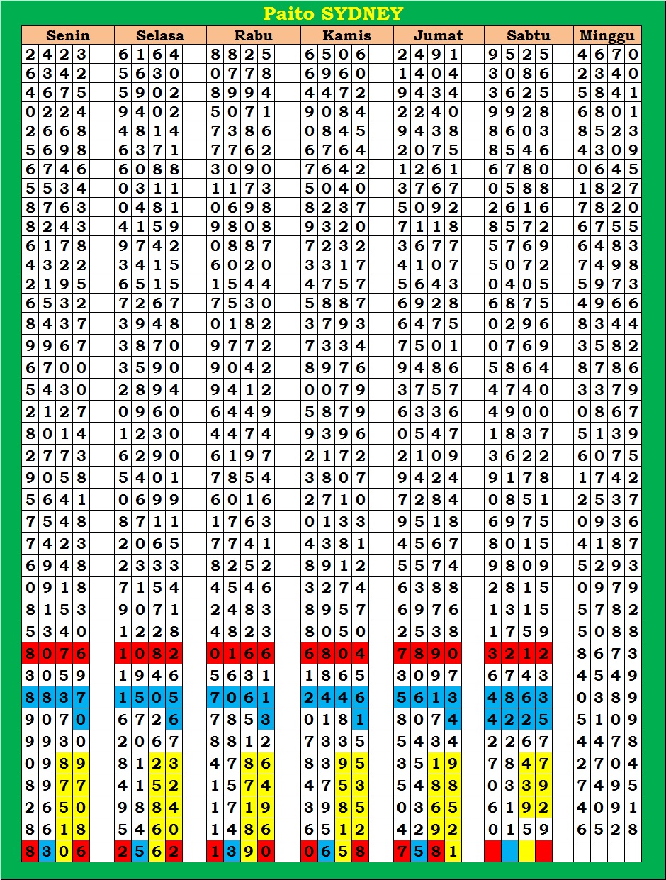 | PAITO WARNA SYDNEY 4D HARIAN |