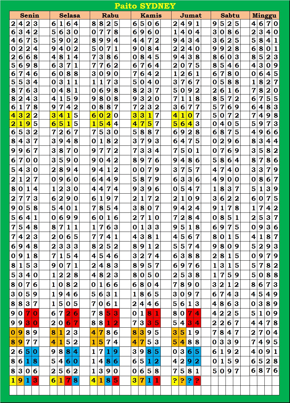 | PAITO WARNA SYDNEY 4D HARIAN |