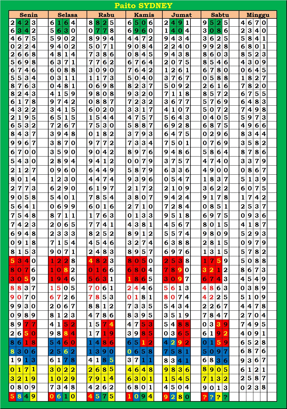 MASTER SYDNEY Sabtu, 31-01-2026 Merupakan Prediksi Otomatis yang menggabungkan Metode Kalender Togel Dengan Rumus-rumus kontrol yang sudah terbukti keakuratanya.Gunakan Aplikasi Rekap untuk mendapatkan LN TOP. Harap Maklum Jika kadang meleset MASTER SYDNEY kita. Jadikan ini sebagai perbandingan saja dan tetap UPS