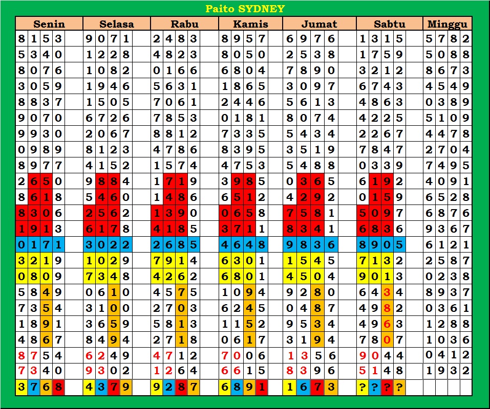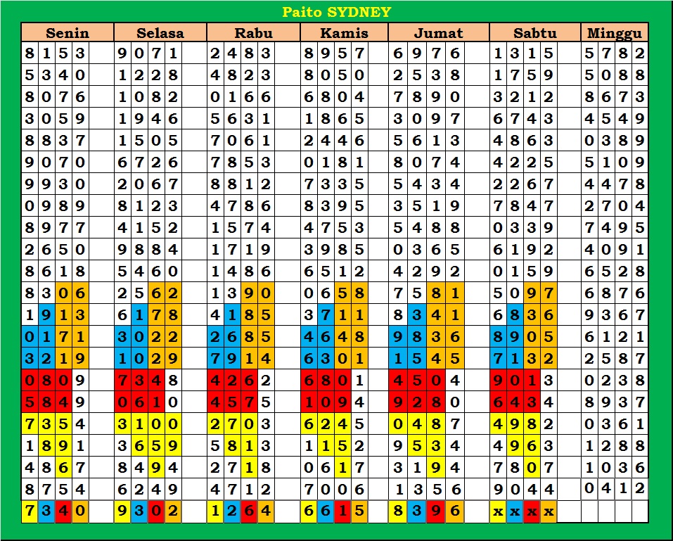 | PAITO WARNA SYDNEY 4D HARIAN |