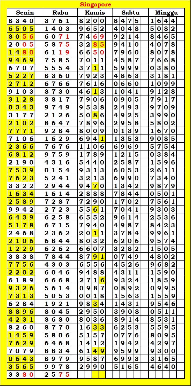 MASTER SINGAPURA Kamis, 05-02-2026 Merupakan Prediksi Otomatis yang menggabungkan Metode Kalender Togel Dengan Rumus-rumus kontrol yang sudah terbukti keakuratanya.Gunakan Aplikasi Rekap untuk mendapatkan LN TOP. Harap Maklum Jika kadang meleset MASTER SINGAPURA kita. Jadikan ini sebagai perbandingan saja dan tetap UPS
