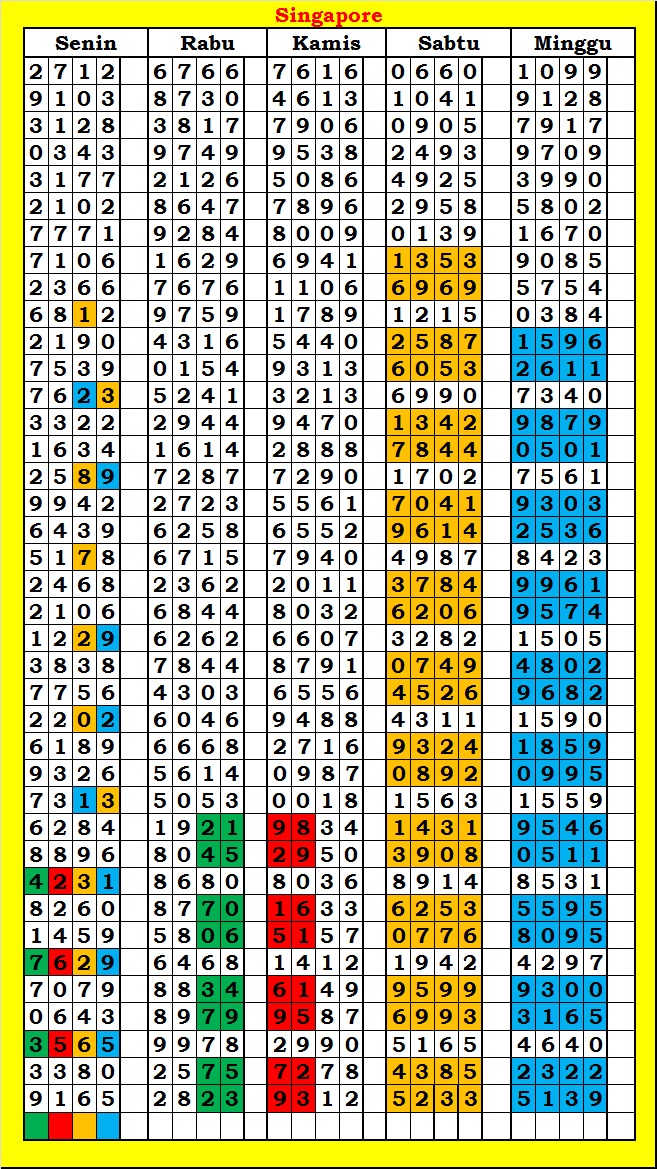 MASTER SINGAPURA Kamis, 05-02-2026 Merupakan Prediksi Otomatis yang menggabungkan Metode Kalender Togel Dengan Rumus-rumus kontrol yang sudah terbukti keakuratanya.Gunakan Aplikasi Rekap untuk mendapatkan LN TOP. Harap Maklum Jika kadang meleset MASTER SINGAPURA kita. Jadikan ini sebagai perbandingan saja dan tetap UPS