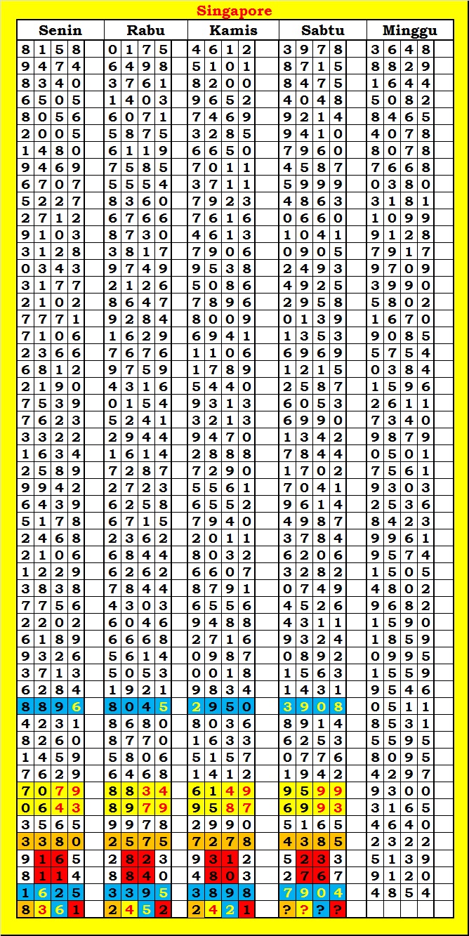 MASTER SINGAPURA Kamis, 05-02-2026 Merupakan Prediksi Otomatis yang menggabungkan Metode Kalender Togel Dengan Rumus-rumus kontrol yang sudah terbukti keakuratanya.Gunakan Aplikasi Rekap untuk mendapatkan LN TOP. Harap Maklum Jika kadang meleset MASTER SINGAPURA kita. Jadikan ini sebagai perbandingan saja dan tetap UPS