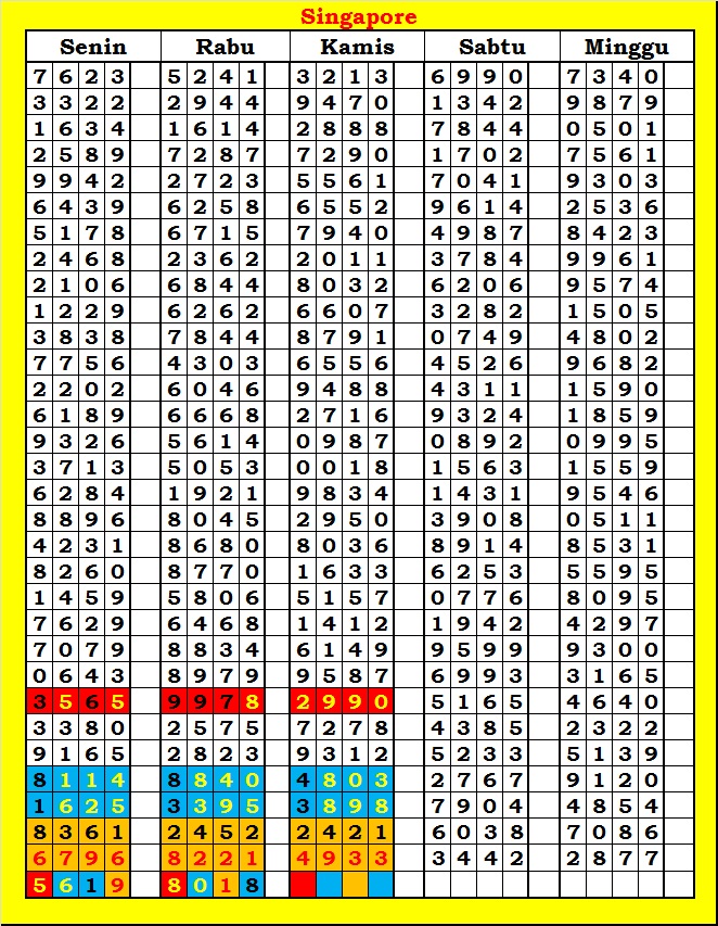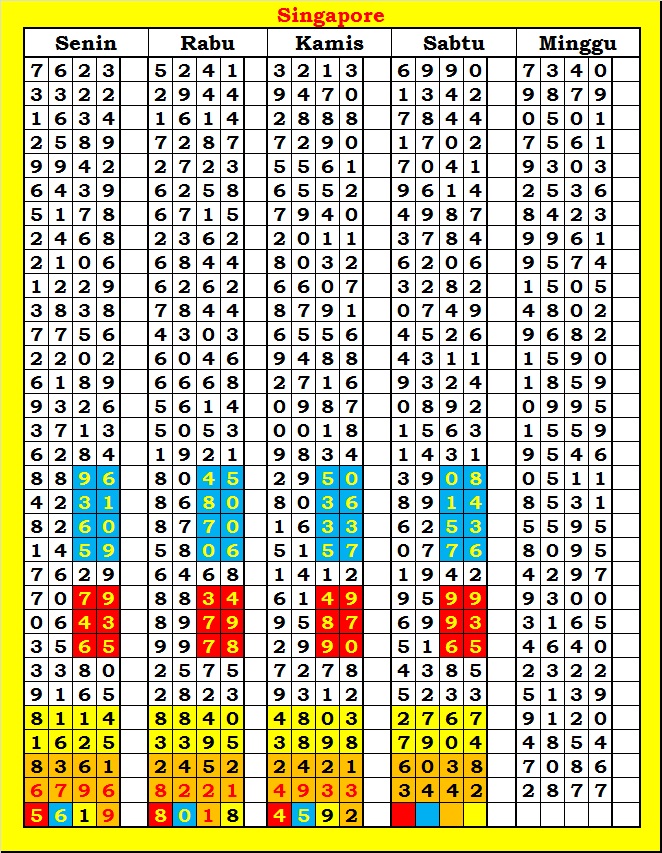 MASTER SINGAPURA Kamis, 05-02-2026 Merupakan Prediksi Otomatis yang menggabungkan Metode Kalender Togel Dengan Rumus-rumus kontrol yang sudah terbukti keakuratanya.Gunakan Aplikasi Rekap untuk mendapatkan LN TOP. Harap Maklum Jika kadang meleset MASTER SINGAPURA kita. Jadikan ini sebagai perbandingan saja dan tetap UPS