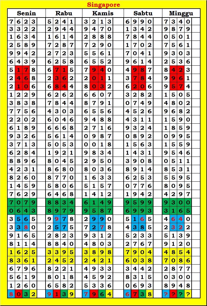 MASTER SINGAPURA Rabu, 04-02-2026 Merupakan Prediksi Otomatis yang menggabungkan Metode Kalender Togel Dengan Rumus-rumus kontrol yang sudah terbukti keakuratanya.Gunakan Aplikasi Rekap untuk mendapatkan LN TOP. Harap Maklum Jika kadang meleset MASTER SINGAPURA kita. Jadikan ini sebagai perbandingan saja dan tetap UPS