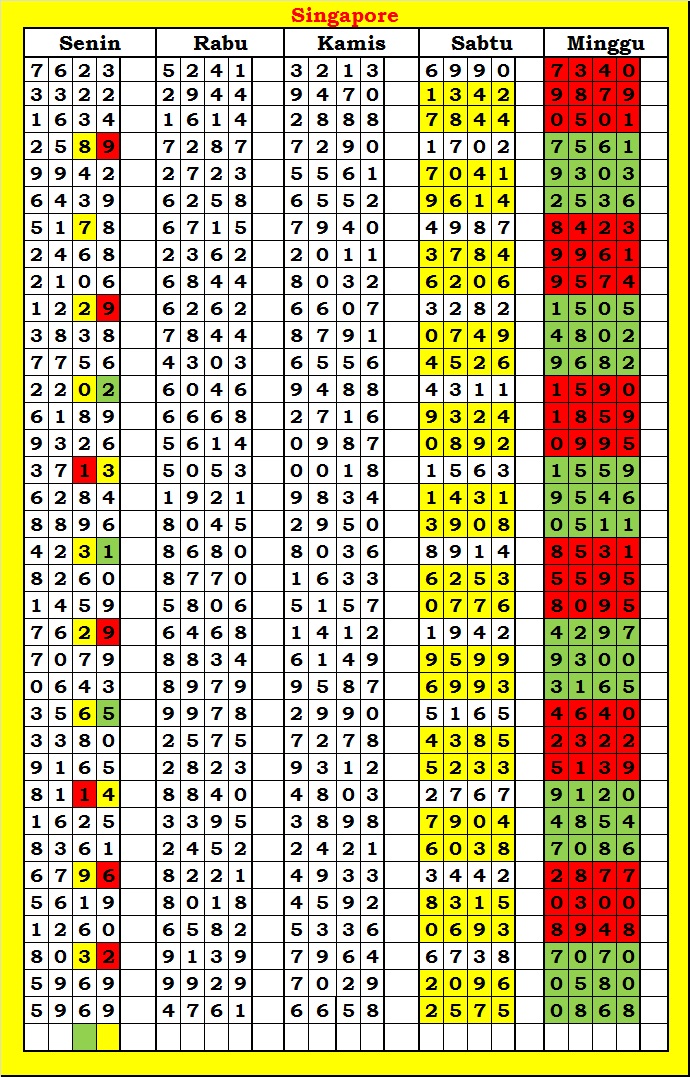 MASTER SINGAPURA Rabu, 04-02-2026 Merupakan Prediksi Otomatis yang menggabungkan Metode Kalender Togel Dengan Rumus-rumus kontrol yang sudah terbukti keakuratanya.Gunakan Aplikasi Rekap untuk mendapatkan LN TOP. Harap Maklum Jika kadang meleset MASTER SINGAPURA kita. Jadikan ini sebagai perbandingan saja dan tetap UPS