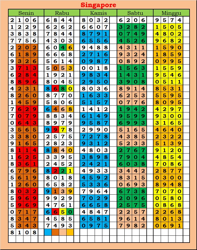 MASTER SINGAPURA Rabu, 04-02-2026 Merupakan Prediksi Otomatis yang menggabungkan Metode Kalender Togel Dengan Rumus-rumus kontrol yang sudah terbukti keakuratanya.Gunakan Aplikasi Rekap untuk mendapatkan LN TOP. Harap Maklum Jika kadang meleset MASTER SINGAPURA kita. Jadikan ini sebagai perbandingan saja dan tetap UPS