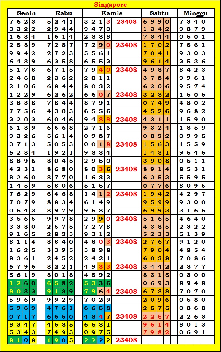 MASTER SINGAPURA Rabu, 04-02-2026 Merupakan Prediksi Otomatis yang menggabungkan Metode Kalender Togel Dengan Rumus-rumus kontrol yang sudah terbukti keakuratanya.Gunakan Aplikasi Rekap untuk mendapatkan LN TOP. Harap Maklum Jika kadang meleset MASTER SINGAPURA kita. Jadikan ini sebagai perbandingan saja dan tetap UPS