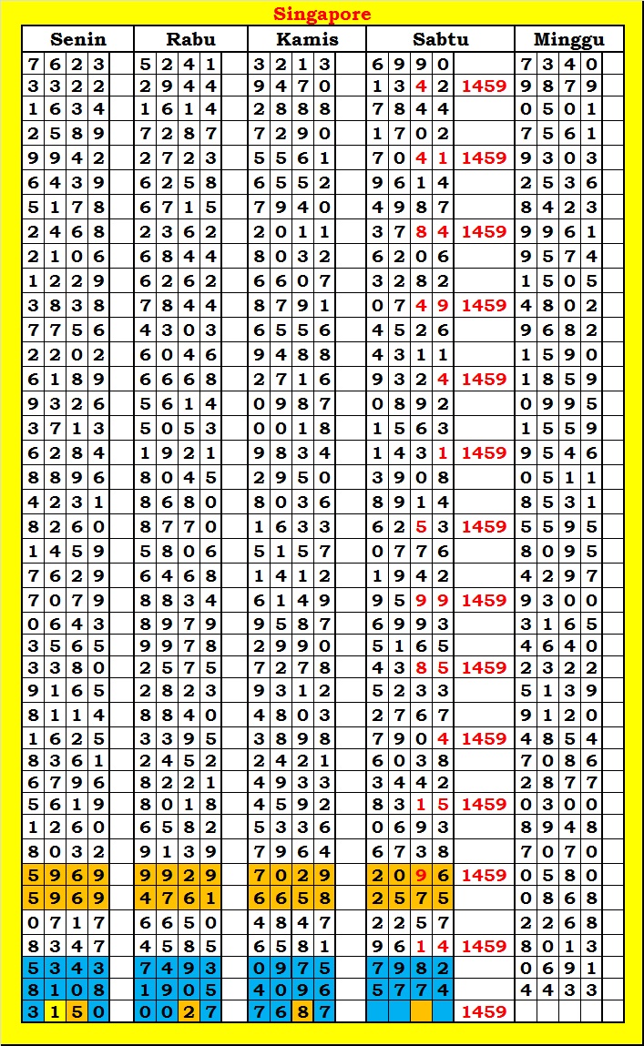 MASTER SINGAPURA Rabu, 04-02-2026 Merupakan Prediksi Otomatis yang menggabungkan Metode Kalender Togel Dengan Rumus-rumus kontrol yang sudah terbukti keakuratanya.Gunakan Aplikasi Rekap untuk mendapatkan LN TOP. Harap Maklum Jika kadang meleset MASTER SINGAPURA kita. Jadikan ini sebagai perbandingan saja dan tetap UPS