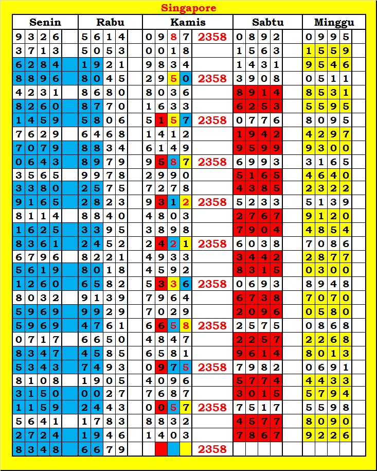 MASTER SINGAPURA Rabu, 04-02-2026 Merupakan Prediksi Otomatis yang menggabungkan Metode Kalender Togel Dengan Rumus-rumus kontrol yang sudah terbukti keakuratanya.Gunakan Aplikasi Rekap untuk mendapatkan LN TOP. Harap Maklum Jika kadang meleset MASTER SINGAPURA kita. Jadikan ini sebagai perbandingan saja dan tetap UPS