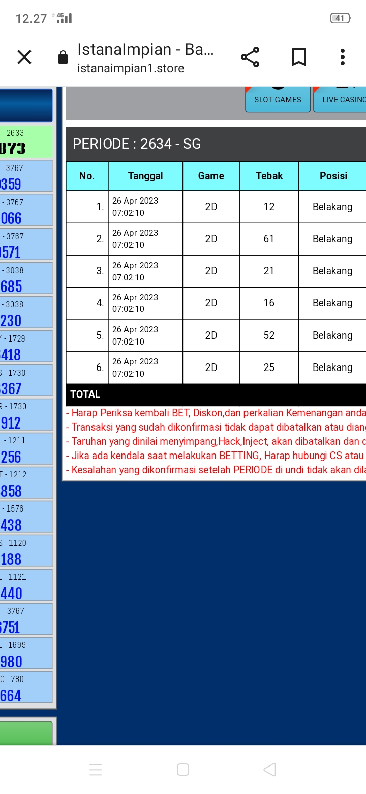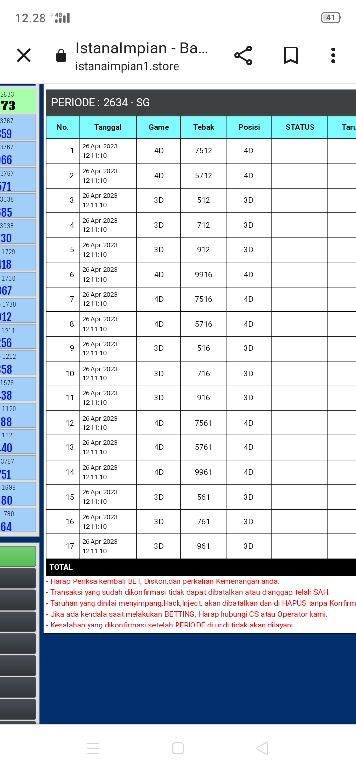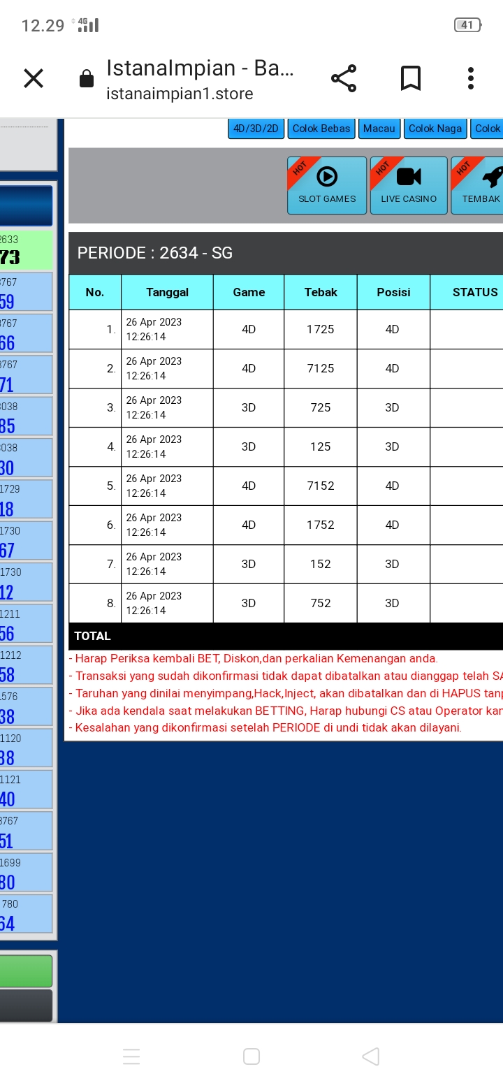 semua postingan komentar SARA, politik, saling menghujat serta saling merendahkan antara prediktor satu dengan yang lainnya jika kami lagi OL mohon maaf langsung kami hapus dan jika telah diperingatkan masih mengulang kami lock datanya