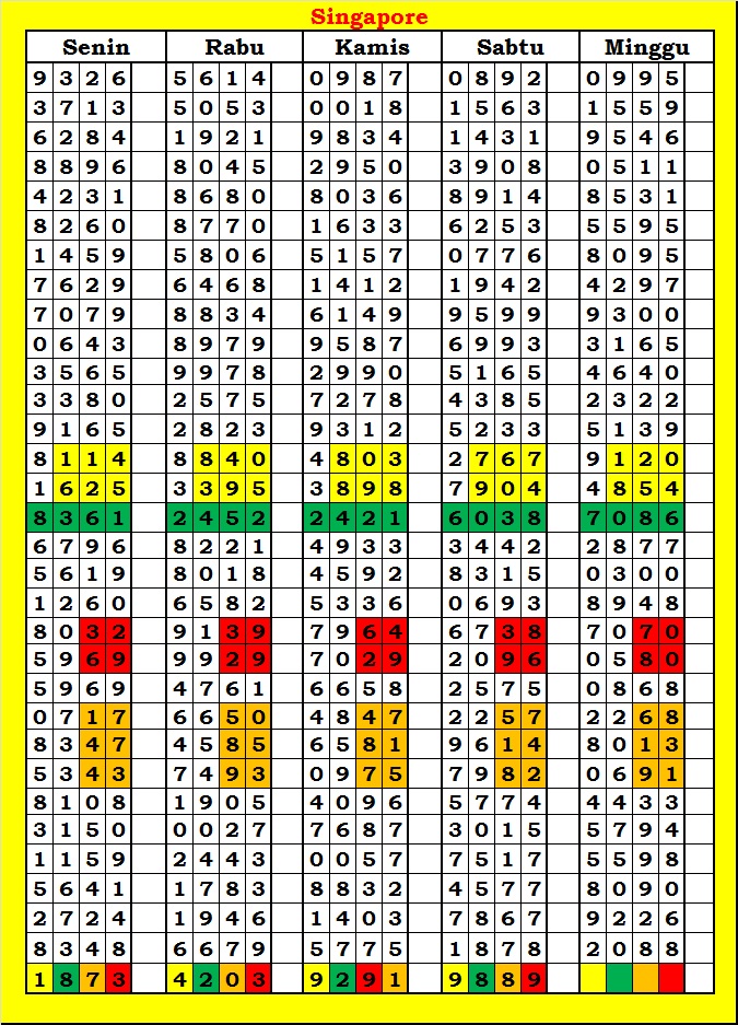 MASTER SINGAPURA Rabu, 04-02-2026 Merupakan Prediksi Otomatis yang menggabungkan Metode Kalender Togel Dengan Rumus-rumus kontrol yang sudah terbukti keakuratanya.Gunakan Aplikasi Rekap untuk mendapatkan LN TOP. Harap Maklum Jika kadang meleset MASTER SINGAPURA kita. Jadikan ini sebagai perbandingan saja dan tetap UPS