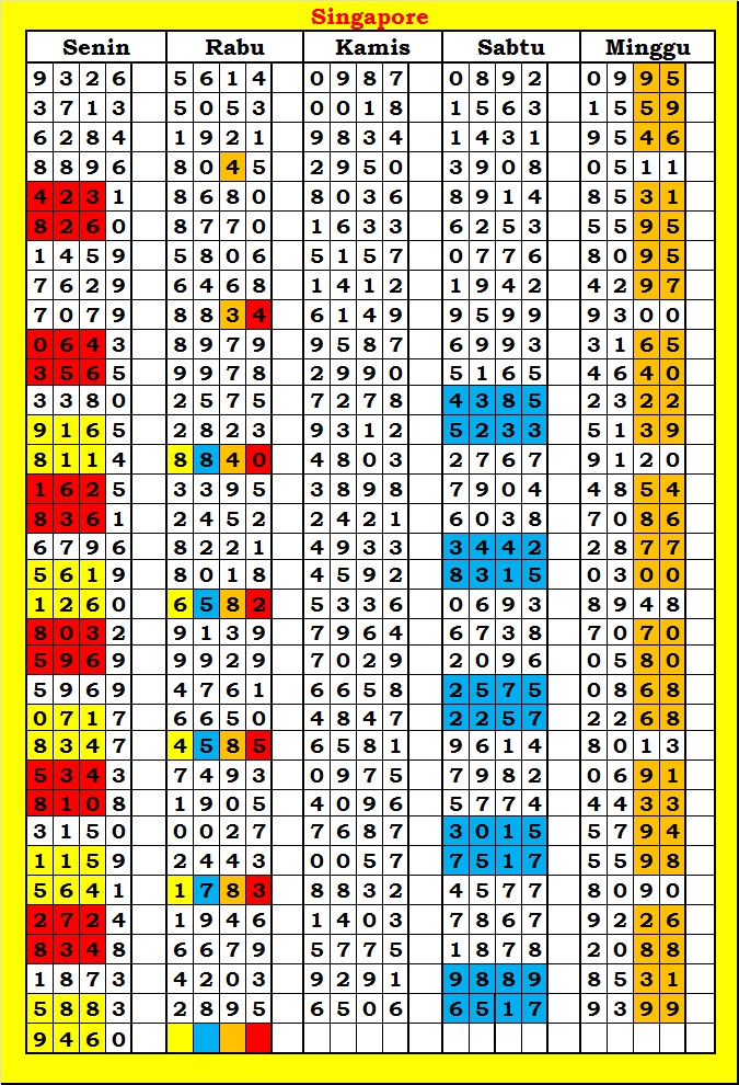 MASTER SINGAPURA Rabu, 04-02-2026 Merupakan Prediksi Otomatis yang menggabungkan Metode Kalender Togel Dengan Rumus-rumus kontrol yang sudah terbukti keakuratanya.Gunakan Aplikasi Rekap untuk mendapatkan LN TOP. Harap Maklum Jika kadang meleset MASTER SINGAPURA kita. Jadikan ini sebagai perbandingan saja dan tetap UPS
