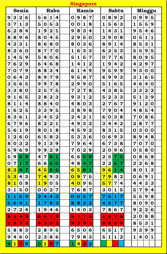 MASTER SINGAPURA Rabu, 04-02-2026 Merupakan Prediksi Otomatis yang menggabungkan Metode Kalender Togel Dengan Rumus-rumus kontrol yang sudah terbukti keakuratanya.Gunakan Aplikasi Rekap untuk mendapatkan LN TOP. Harap Maklum Jika kadang meleset MASTER SINGAPURA kita. Jadikan ini sebagai perbandingan saja dan tetap UPS