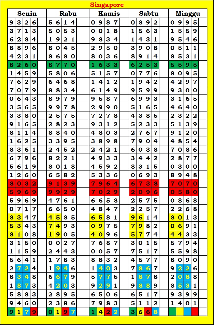 MASTER SINGAPURA Rabu, 04-02-2026 Merupakan Prediksi Otomatis yang menggabungkan Metode Kalender Togel Dengan Rumus-rumus kontrol yang sudah terbukti keakuratanya.Gunakan Aplikasi Rekap untuk mendapatkan LN TOP. Harap Maklum Jika kadang meleset MASTER SINGAPURA kita. Jadikan ini sebagai perbandingan saja dan tetap UPS