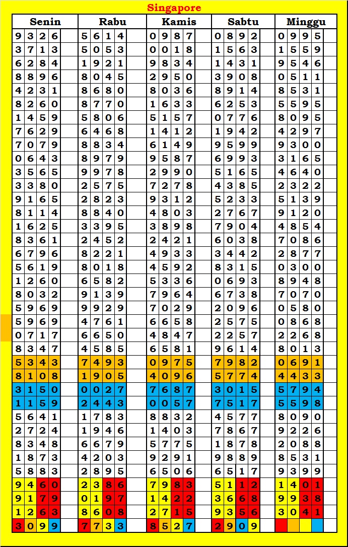 MASTER SINGAPURA Rabu, 04-02-2026 Merupakan Prediksi Otomatis yang menggabungkan Metode Kalender Togel Dengan Rumus-rumus kontrol yang sudah terbukti keakuratanya.Gunakan Aplikasi Rekap untuk mendapatkan LN TOP. Harap Maklum Jika kadang meleset MASTER SINGAPURA kita. Jadikan ini sebagai perbandingan saja dan tetap UPS