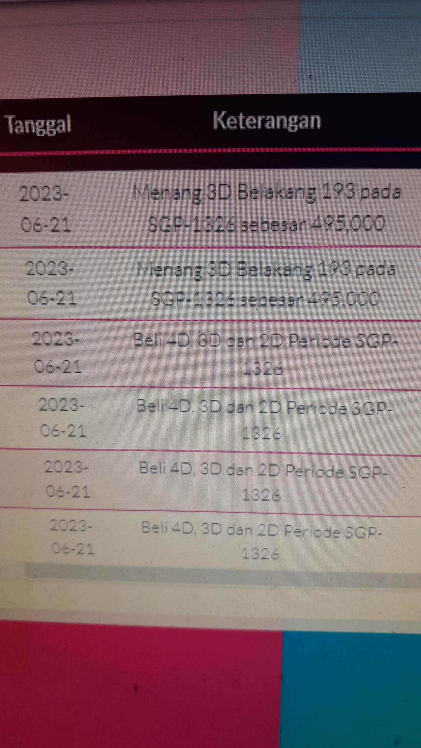 SGP rentet sampai besok