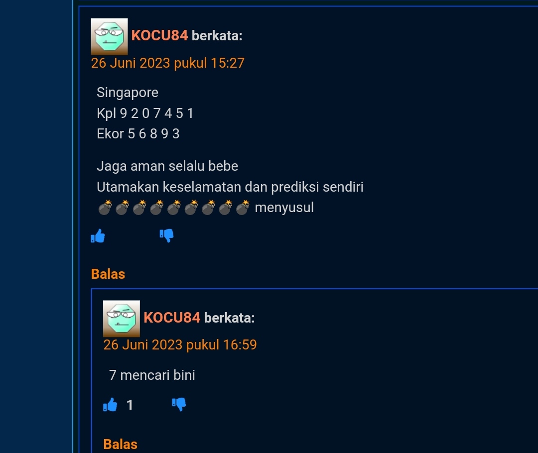 semua postingan komentar SARA, politik, saling menghujat serta saling merendahkan antara prediktor satu dengan yang lainnya jika kami lagi OL mohon maaf langsung kami hapus dan jika telah diperingatkan masih mengulang kami lock datanya