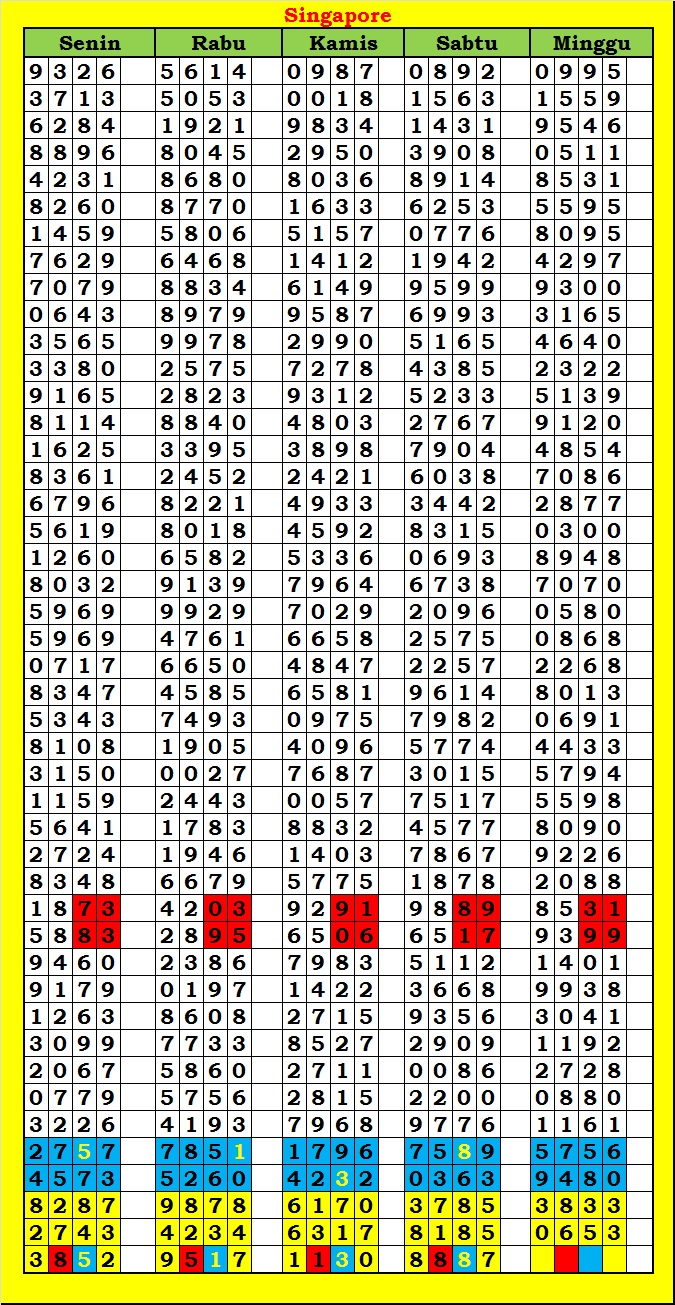 MASTER SINGAPURA Senin, 02-02-2026 Merupakan Prediksi Otomatis yang menggabungkan Metode Kalender Togel Dengan Rumus-rumus kontrol yang sudah terbukti keakuratanya.Gunakan Aplikasi Rekap untuk mendapatkan LN TOP. Harap Maklum Jika kadang meleset MASTER SINGAPURA kita. Jadikan ini sebagai perbandingan saja dan tetap UPS