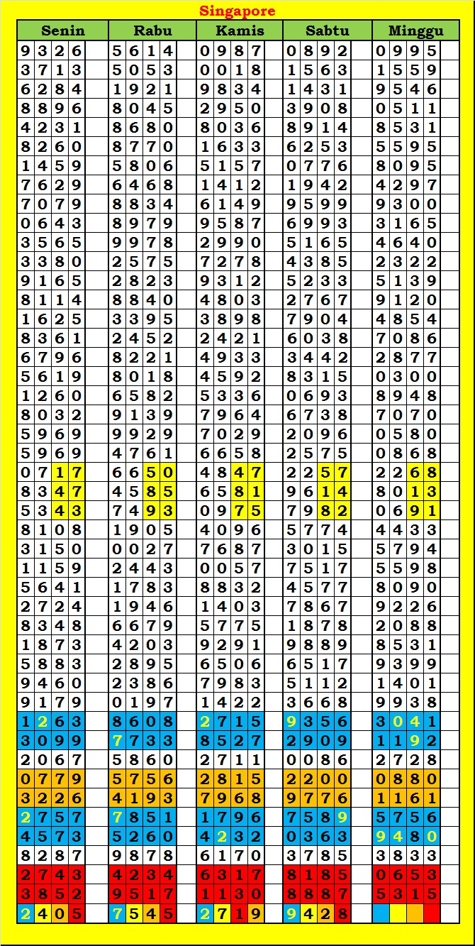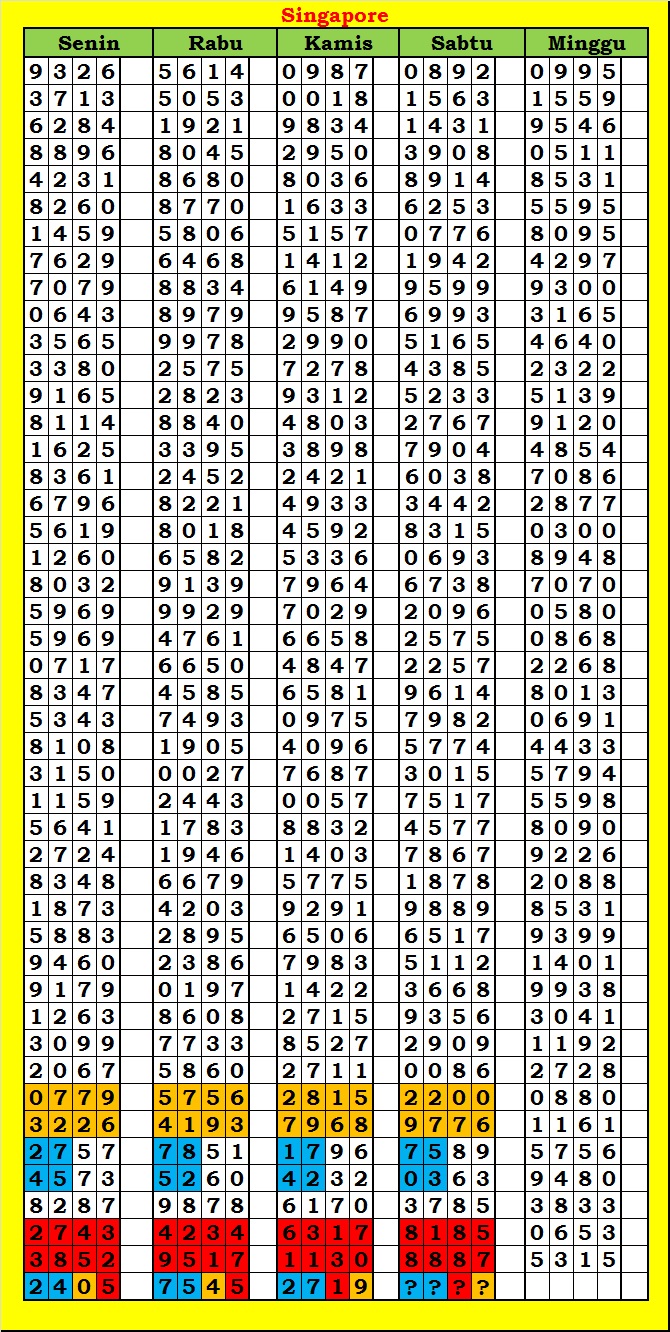 MASTER SINGAPURA Senin, 02-02-2026 Merupakan Prediksi Otomatis yang menggabungkan Metode Kalender Togel Dengan Rumus-rumus kontrol yang sudah terbukti keakuratanya.Gunakan Aplikasi Rekap untuk mendapatkan LN TOP. Harap Maklum Jika kadang meleset MASTER SINGAPURA kita. Jadikan ini sebagai perbandingan saja dan tetap UPS